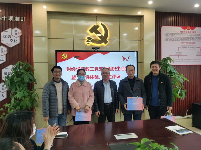 2021年1月22日早上,财经学院教工党支部组织全体教职工党员在1-507会议室召开组织生活会。学院党委委员、副院长贺文华以一名普通党员的身份参加会议,与支部同志们一起过组织生活、交流思想体会、锻炼党性修养。