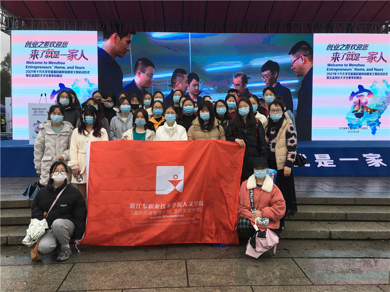 3月6日,学院党委委员、副院长贺文华带领学生工作部张海生、副部长黄祖奋及相关人员,组织200名学生前往温州高教园区学子广场,参加2021年十万大学生留温回温创业就业工程启动仪式暨在温高校大学生春季招聘会,启动仪式由温州市政府副市长陈应许主持。
