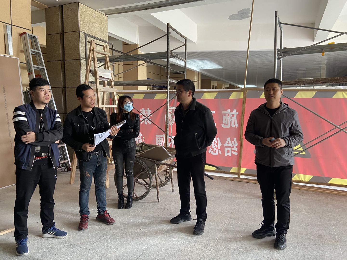 2021年4月15日下午,学院党委委员、副院长贺文华到“瓯江红”东方学院党群服务中心实地察看建设情况,详细了解服务中心整体设计方案和建设进度等情况。组织部部长陈振建、副部长毛聪聪及其他相关负责同志参加调研。