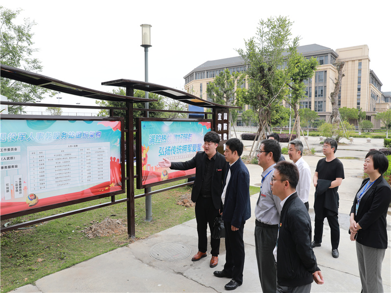 2021年4月25日,市退役军人事务局副局长杨雷、市退役军人事务局思想政治和权益维护处处长王榜、区民政和卫生健康局(退役军人事务局)党委书记、局长叶赛晓等一行,莅临浙江东方职业技术学院,调研我院退役军人事务服务工作。学院党委委员、副院长贺文华、学工部(人武部)部长张海生、数字工程学院党总支副书记谷蓓蕾、创业学院教授台新民等陪同调研。