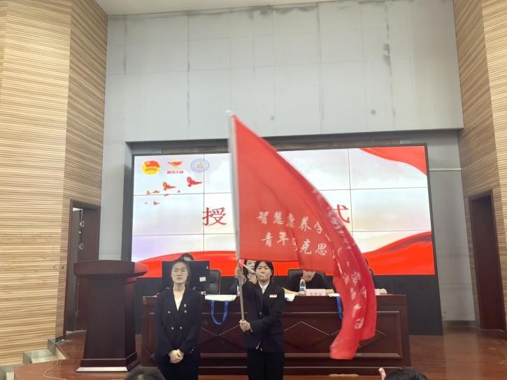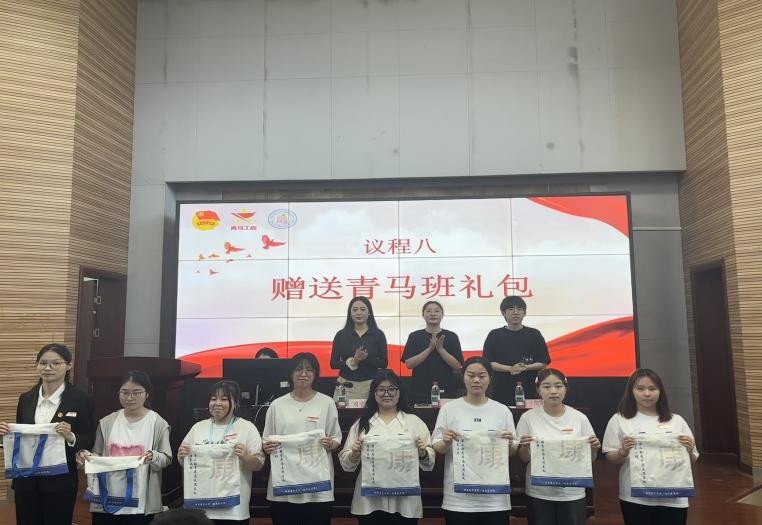 随后,老师们为青马学院学生代表赠送了青马学习礼包。薪火相承旗展志,青衿接力梦为舟。青马班班旗交接仪式上,第一期优秀学员代表李翔翔同学将鲜红的班旗郑重递交给第二期学员代表王菲菲同学手中时,旗帜上“青年马克思主义者”的金色字体熠熠生辉。这不仅是一面旗帜的传递,更是信仰的赓续和使命的接力。