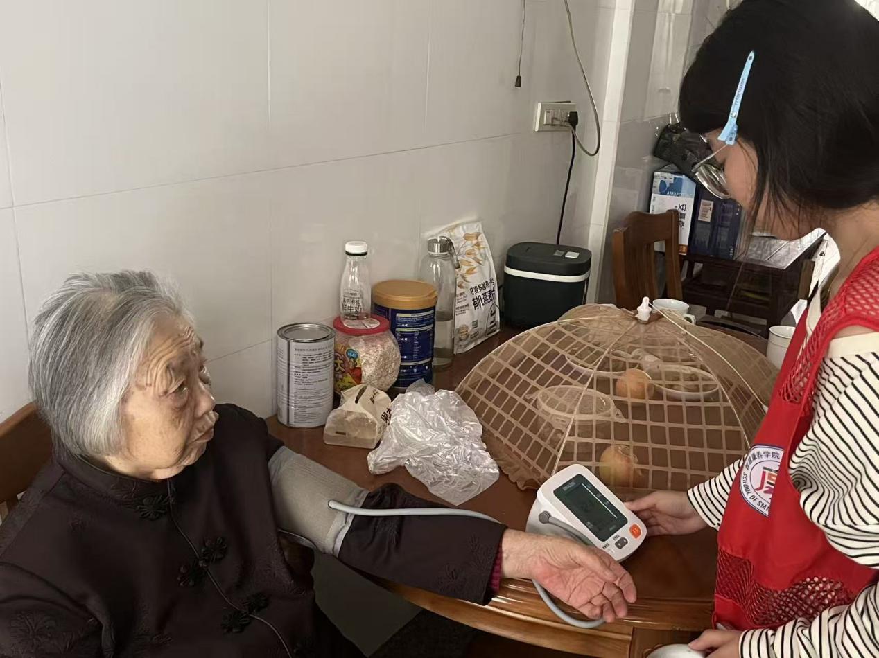 还有的则在一旁帮忙整理血压检测记录表,将每位老人的姓名、年龄、检测结果和健康建议一一登记,方便社区后续跟踪关注。