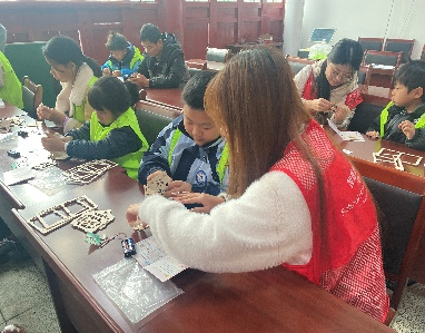 在动手制作环节,孩子们每人领取了一份声控灯材料包。志愿者们耐心分组指导,从识别电子元件、连接线路到组装灯罩,一步步引导孩子们将理论知识转化为手中作品。“姐姐,这个电阻应该放在哪里?”“哥哥,我的灯怎么还不亮呀?”面对孩子们的疑问,志愿者们俯身细致解答,手把手协助他们排查电路、调整元件。过程中,孩子们不仅熟悉了电路的基本连接方式,更在实践中理解了声控模块的协作逻辑。