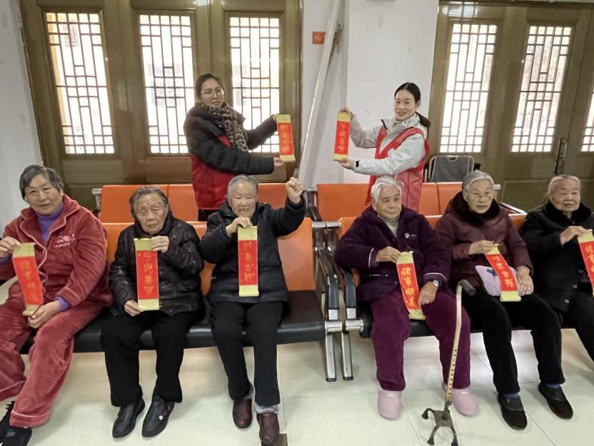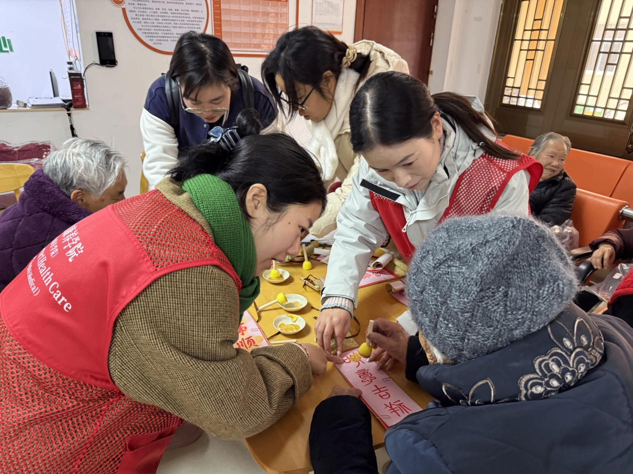 次日,在鹿西岛养老院,教师们继续开展健康关怀与年节主题活动,为老人们测量血压、检测血糖,还和大家一同制作新年手工。老人们手捧着亲手完成的春联,笑容满面地相互道贺“新年快乐”,这份温暖的互动,成为冬日海岛上最动人的风景。临别之际,老人们依依不舍,连连道谢,温馨的场面令人动容。