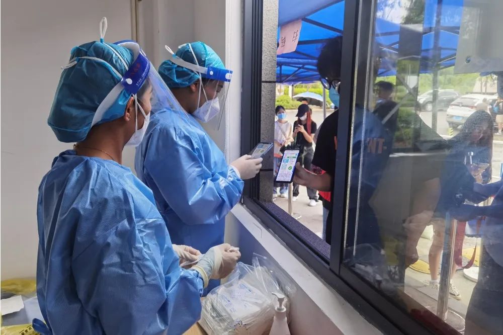 “请大家佩戴好口罩,保持1米线距离,提前出示温州防疫码或身份证,主动配合工作人员测量体温!”在学生返校期间,为做好核酸检测工作,党员教师志愿者开展维持秩序、信息登记等志愿服务,与医护人员密切配合,竭力减少人员的排队时间,争取在最短的时间内完成检测任务,筑牢疫情防线。志愿者们每次早早到达核酸检测采样点,根据责任分工,纷纷忙碌起来,引导学生1米线距离;还向他们宣传疫情防控知识,提醒他们增强防护意识,做好防护措施。