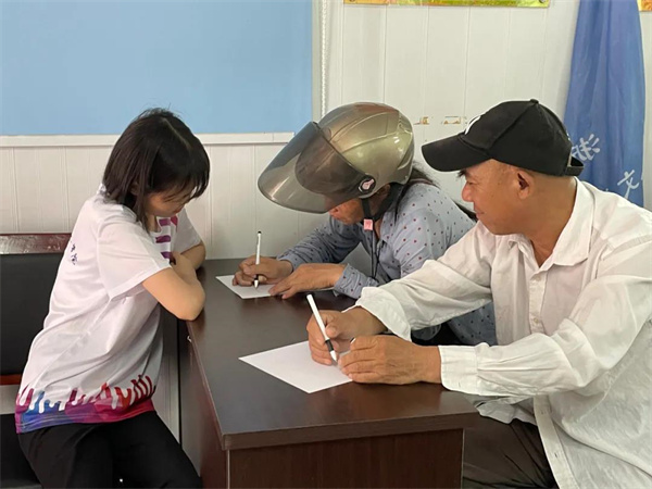队员们到了东溪村村委会,发现爷爷奶奶们早已坐在了座位上跃跃欲试,活动正式开始后,队员们井然有序地给爷爷奶奶们分发白纸和铅笔,随后爷爷奶奶们纷纷拿出身份证开始尝试写出自己的名字,队员们来到爷爷奶奶们的身边,耐心教她们如何握笔,怎样写字,看着爷爷奶奶们一遍又一遍认真地写下了自己的名字,认真努力学习的样子,让队员们感到非常欣喜和自豪。