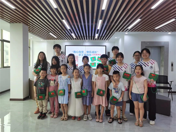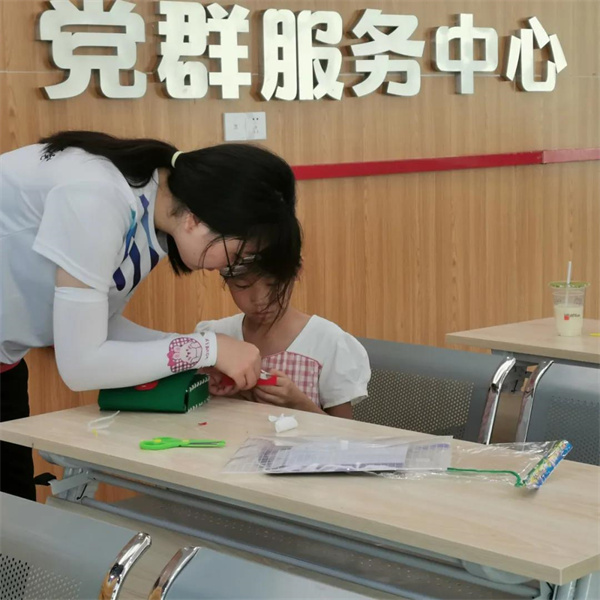 今天是我们薪火公益课堂开课的第二节课“我心向党,快乐成长”,课程内容主要是与小朋友们一起缝制红色经典小军包,首先我们给每一位小朋友发放军布、红色贴纸、剪刀、针线等制作材料,然后让小朋友先自己开动脑筋想想怎样去做小军包,最后再向小朋友们详细指导如何去制作小军包,小朋友们一边认真的听一边仔细研究制作,针对缝制难点部分,薪火实践队队员们手把手教,不一会儿,一个个精致的小军包便制作完成了,看着如此漂亮可爱的小包包,小朋友们充满了成就感,开心的都乐开了花。