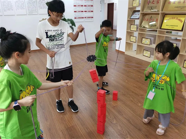 第二个活动是搭积木,在小队长的指挥下,小队员们集中注意力在中间的木块上,早期搭积木并不顺利,在小队长的鼓励下,孩子们重新鼓起勇气,于欢声笑语中完成了任务。