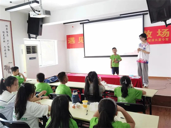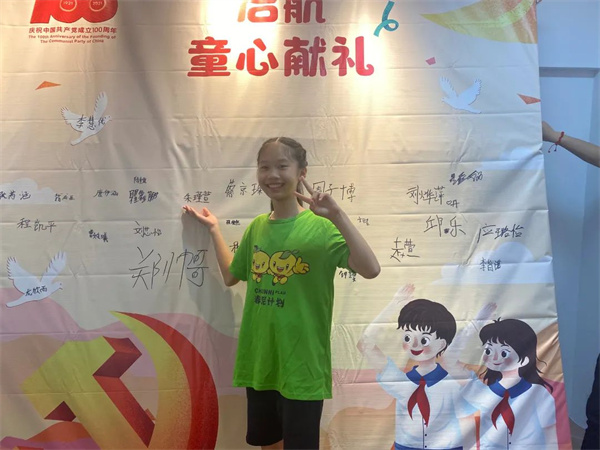 小朋友们整齐响亮的口号声:“童心看百年,砥砺新征程!‘启航,童心献礼’夏令营开营啦!”拉开了暑期儿童夏令营正式开始的序幕。活动正式开始,在团队成员的鼓励帮助下,孩子们热情高涨,积极参与猜红歌游戏,齐声欢唱《歌唱祖国》。本次活动开展得十分顺利,小朋友们玩的也十分开心。