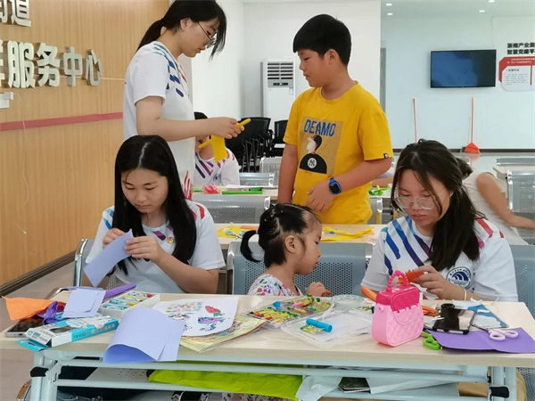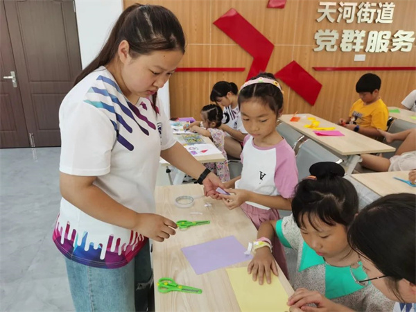 7月12日上午,“薪火青年”实践队开展了折扇手工活动。小朋友们用稚嫩的小手孩子制作出了一把把漂亮的扇子作品,为炎炎夏日带来丝丝清风,让这酷热的天气也逐渐变得凉爽舒适起来。