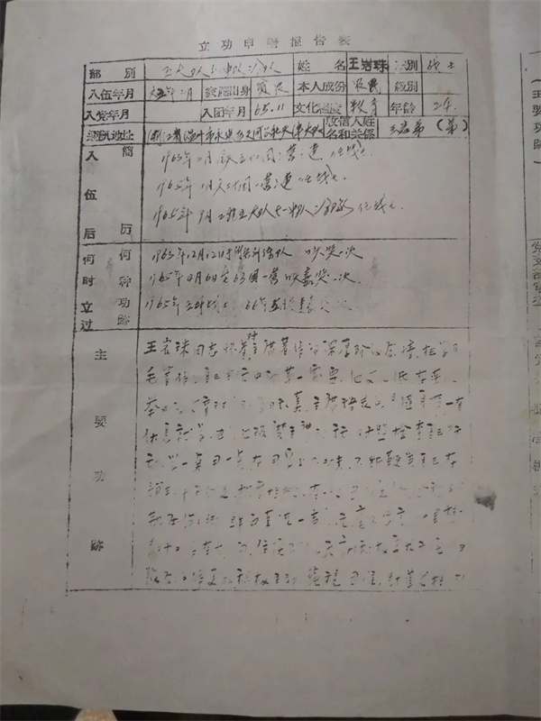 王岩珠,党龄五十五年,部队服役六年,参加过抗美援越战争,在部队荣获一次战时三等功、五次嘉奖。