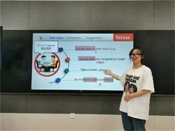 前期,由老师们带领队伍同学们进行活动安排梳理,同学们都怀着激动和好奇的心情。活动开始后,老师介绍了此次社会实践的目的并为每位同学安排了活动任务。活动过程中,同学都非常认真地观摩老师们的示范课,没有丝毫的松懈。示范课后,同学们开始进入了自己的“角色”,老师在一旁加以指导。同学们为了在活动中学到更多的知识和经验,都在孜孜不倦地练习。有的同学和自己的搭档进行练习,有的同学在埋头苦干梳理稿子,有的同学还去找老师“开小灶”。