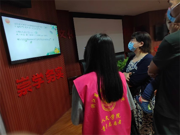 在活动的最后各位志愿者协助实践所的工作人员一同欢送到场的各位家长及其儿童,并积极配合在场人员整理场所卫生,在场的志愿者也得到了在场工作人员的肯定,充分的体现了东风学子做事负责认真的做事态度,也与学校“合和尚善,自强不息”校训相一致,同时也充分的展现了东方学子积极向上,乐于进取的精神风貌。