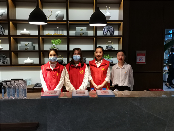 5月22日早,人文学院志愿者赴瓯海区南白象街道的康养项目现代绿城金竹嘉园,为以“乐享生活,自在康养”为主题的展示厅暨样板房开放活动担任志愿者。
