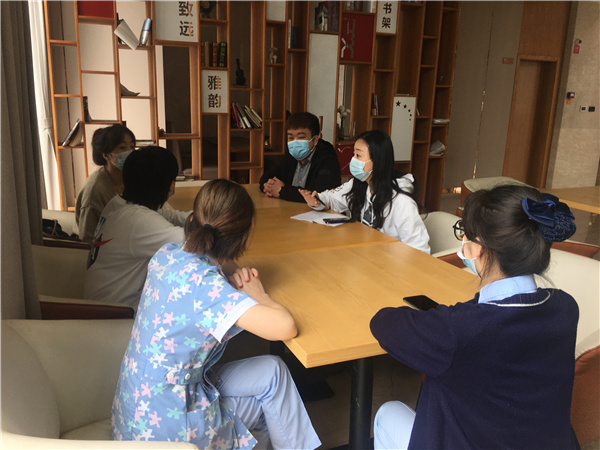 第一站,一行人走访了温州和平国际医院,看望了人文学院18级老年专业学生在这里实习情况,询问他们目前在实习工作中有没有遇到问题,实习薪资待遇如何,实习结束是否会留本单位工作,以及和同学们再宣传温州510人才计划政策,同学们纷纷表示目前单位满意度还可以,也愿意留在温州工作。