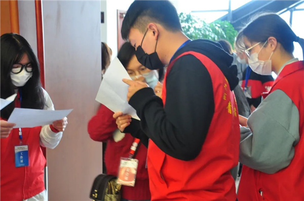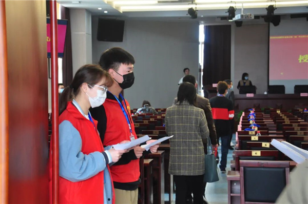 到达目的地后,志愿者们配合工作人员立即开展相关工作,对会议所需物品进行分类及摆放。现场,赵院对颁奖准备工作及相关事宜进行布置,并根据实际情况细节微调、排练,以求达到最好的效果。