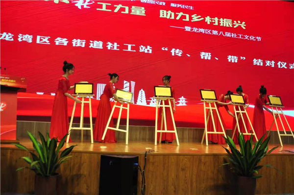 仪式落幕后,礼仪成员和区领导、社工们在气球上写下愿望并且放飞,这是对社会工作者的敬佩也是对他们的真挚祝愿,希望社工们能越走越远。