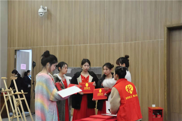 3月17日上午9:00,人文学院礼仪队成员前往浙南云谷路演中心,参加龙湾区第八届社工文化节暨社工宣传周启动仪式。