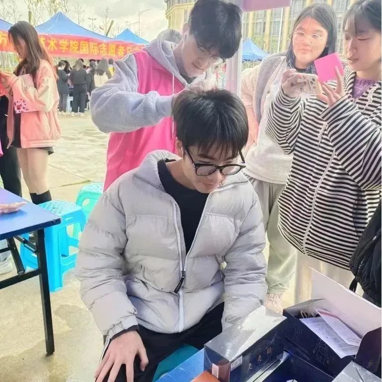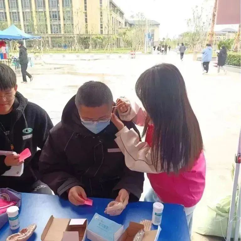 志愿者们都参加过专业的服务培训,抵达现场后便迅速布置好了场地,有条不紊的开展此次服务活动。他们以最精神的面貌、饱满的热情欢迎同学老师们的到来。活动中,志愿者们为同学们做艾灸,耳穴压豆。有时,同学们还和志愿者提出一些疑问,志愿者们也都积极耐心地解答同学们的疑惑。
