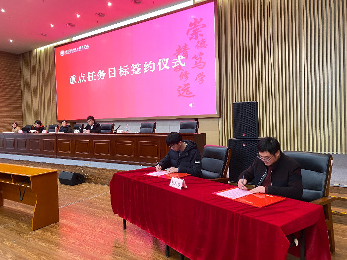 之后,学院举行签约仪式,学院领导分别就重点任务目标、师德师风、意识形态及安全责任与教师代表签订了目标责任书。