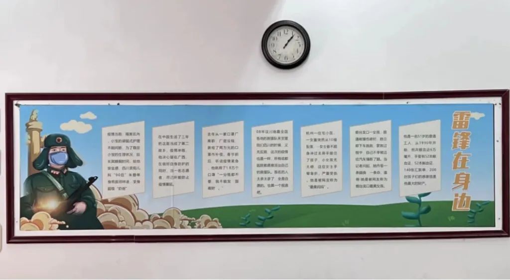 为积极响应国家号召,让同学们更好的学习雷锋精神,校团委组织各班展开相关学雷锋精神活动,给雷锋月的到来锦上添花。为丰富校园雷锋知识宣传,特出板报以供学习。