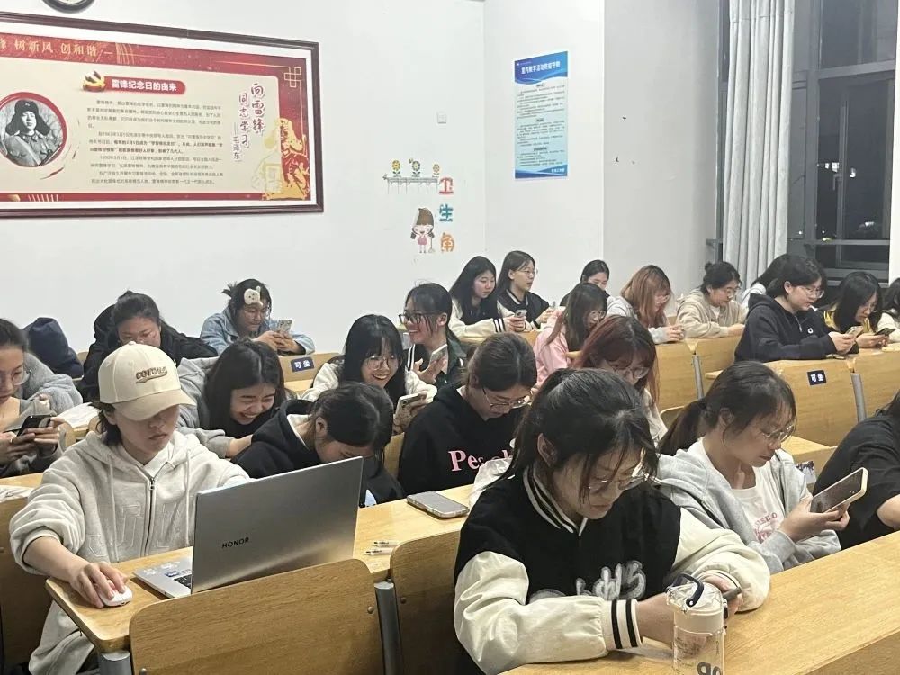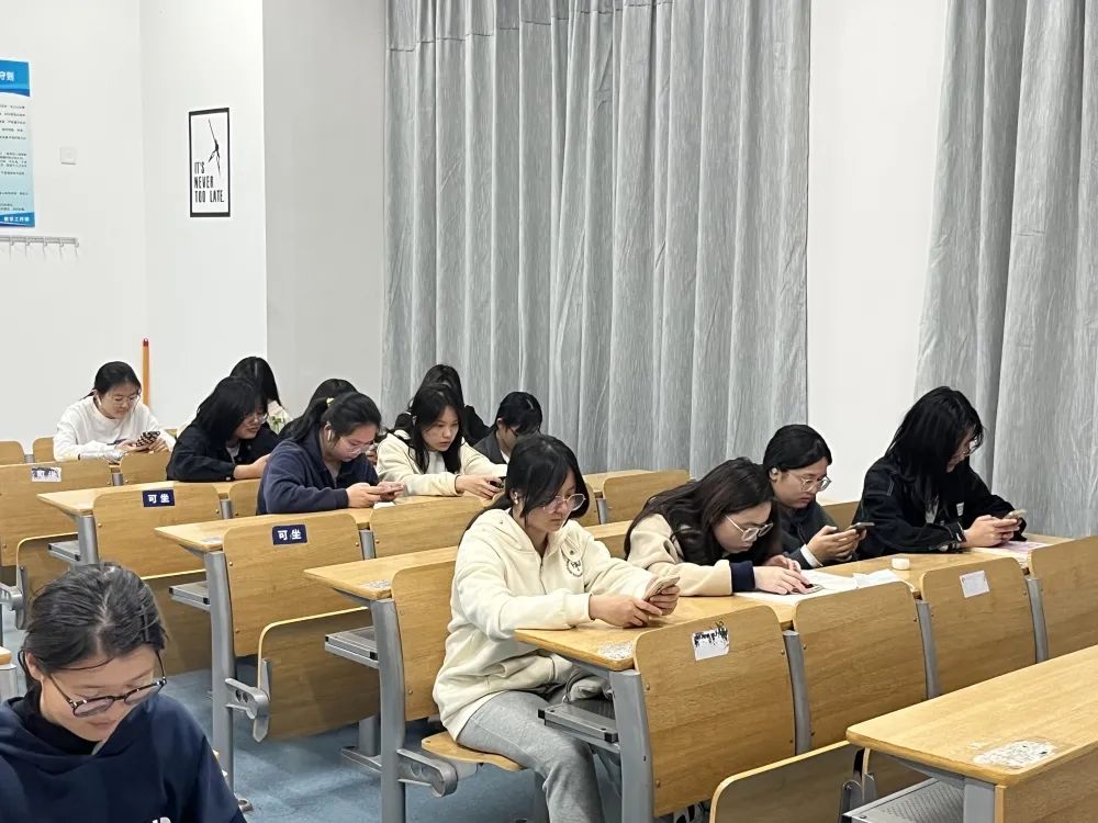 4月13日晚,同学们都来到了教室进行候考。本次竞赛采用线上的模式,同学们维持着优异的考试秩序。此次竞赛,题目皆关于国家安全,题目类型由单选题和多选题组成。