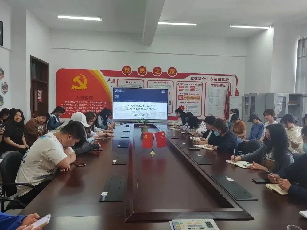 为全面把握人文(智慧康养)学院学生的思想动态,为保证人文(智慧康养)学院学生在校期间能够更好的生活、学习,全面掌握学生近期思想动态情况,提前了解学院各项工作中存在的漏洞,排查安全稳定隐患,进一步增强学院学生思想政治教育工作的针对性,确保校园和谐稳定。现学院于2023年5月10日在党员之家召开了人文学院2022--2023学院五月学生思想动态研判会。本次会议由我院执行主席陈彬倩主持,参加会议的有人文学院副院长赵静、人文学院党总支副书记吴惠书记,以及人文(智慧康养)学院学工办全体辅导员老师。