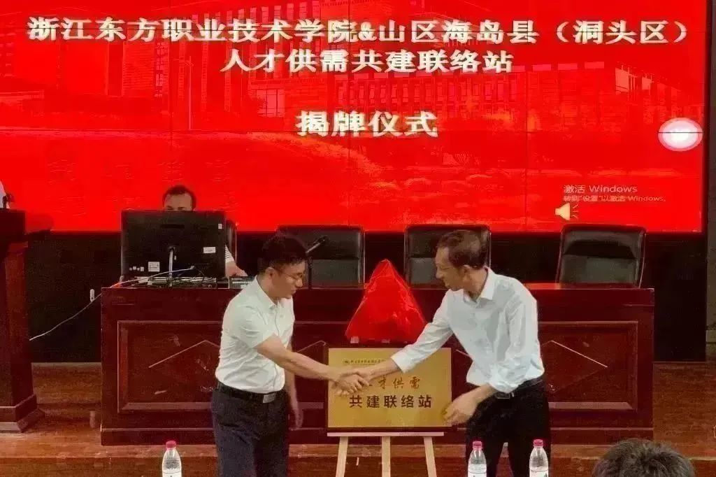 我校为了学校与洞头区的联系与交流共建了人才联络站,并与各位领导开展了揭牌仪式。之后各家企业纷纷抛出橄榄枝,展示企业亮点,以企业文化,职业发展条件,企业环境等吸引学生的青睐。企业代表也对现场学生进行了“1对1”的疑问解答,为学生提供丰富的企业资料。最后洞头人社局部长对于此次交流会进行总结,宣传了洞头地理位置的优越性,政治文化的优良性以及个人发展的无限可能。