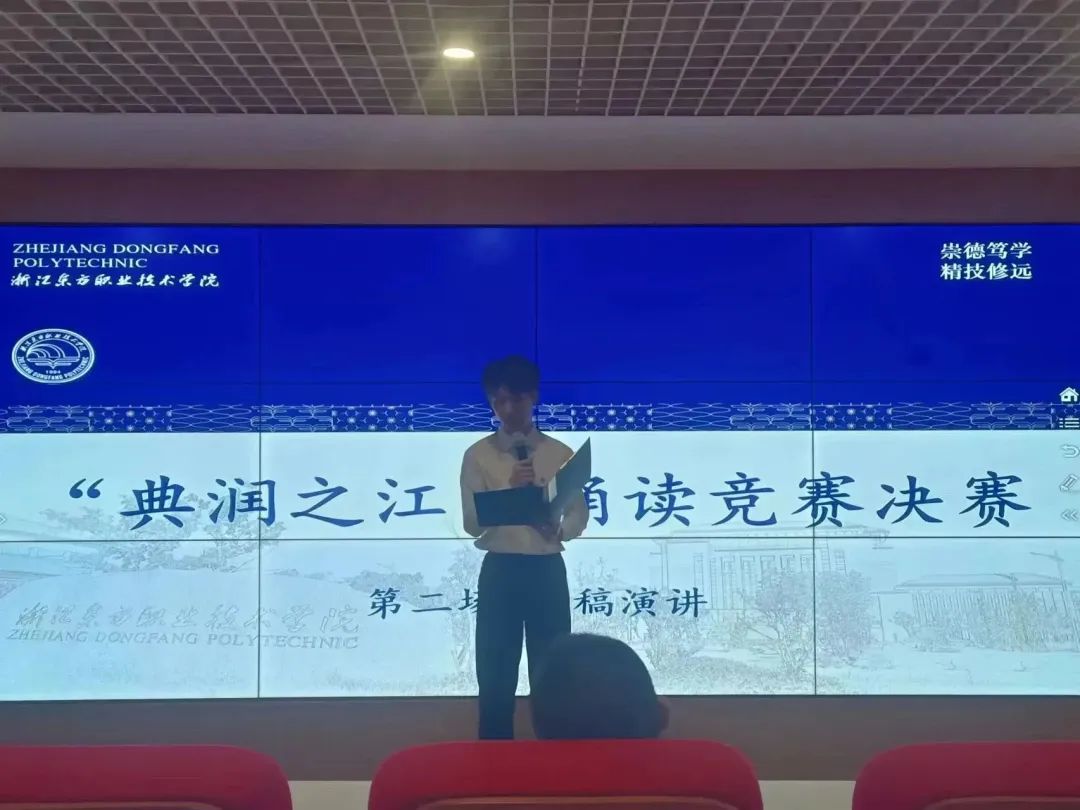 经典诗文是中华民族文化的瑰宝,延续了中国传统文化的命脉。我校为迎接第十一届大学生中华经典诵写讲大赛,特于2023年5月23日晚18:30分在行政楼南怀瑾报告厅举办“典润之江”诵读竞赛校内选拔决赛。出席本次决赛的评委老师分别是:温州报业集团副总王铁军,温州向麓文化公司实践创作导师朱承立,宣统部武德力老师,党校办余华盛老师,管理学院郑文兵老师。