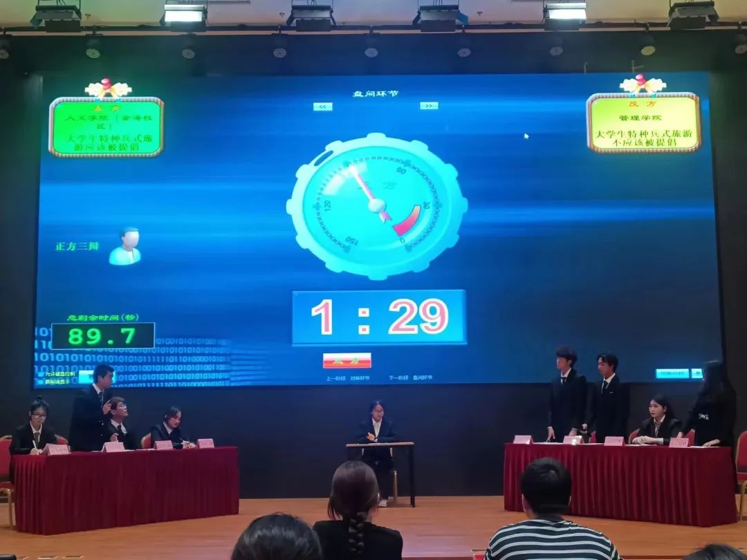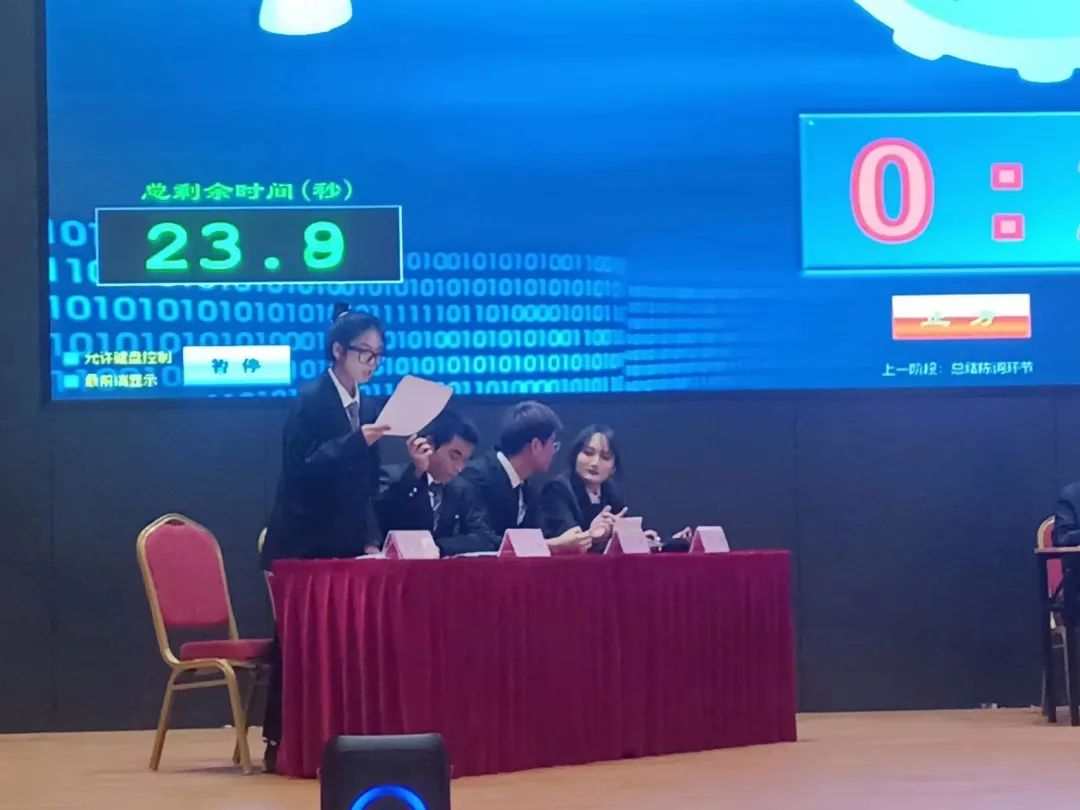 在双发队伍阶段性的总结中,总能抓住对方的漏洞和关键点进行突破,使战局进行不断的扭转,看得观众们热血沸腾。在自由辩论环节,双方更是针锋相对、步步紧逼。比赛进入白热化状态,台下同学凝神聆听,掌声不断,精彩写满每一时刻。最终环节,双方总结陈词,分点讨论,为此次辩论画上一个一个完美的句号。