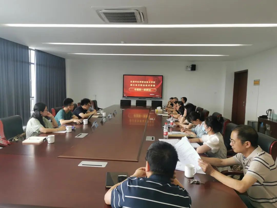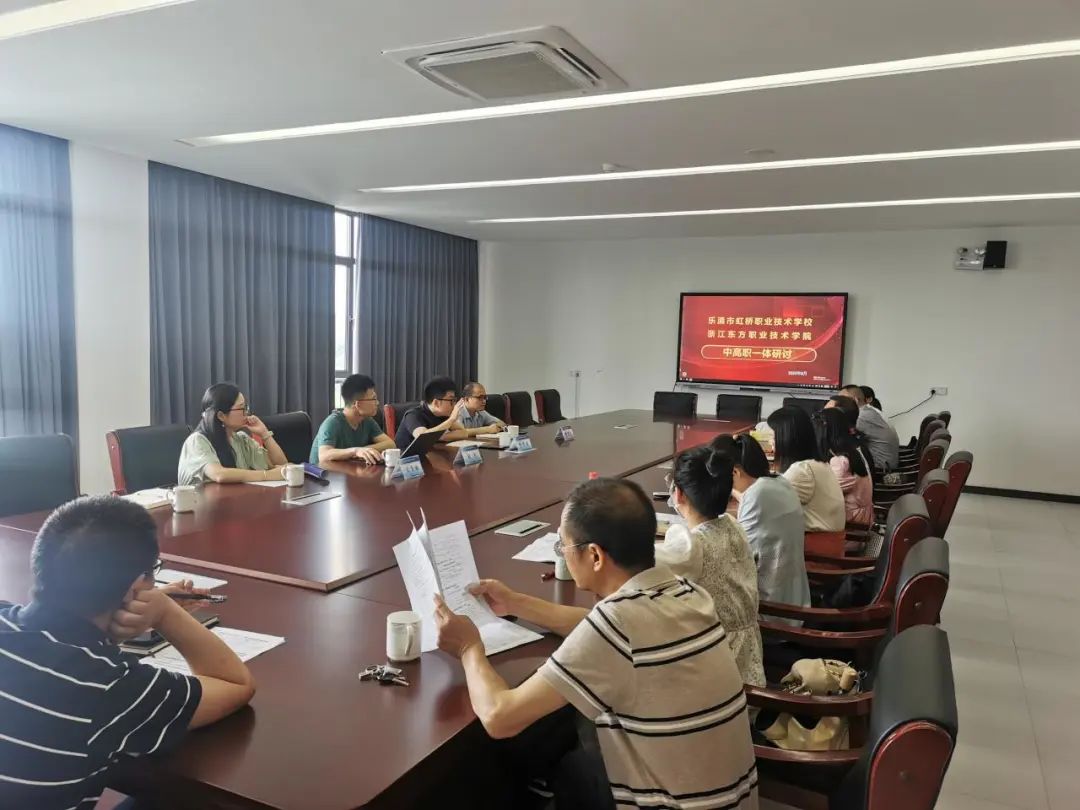 为加强中高职融通培养力度,畅通人才培养渠道,6月13日下午,现代文秘专业老师在招生办负责人带领下,赴乐清虹桥职业技术学校就中高职一体化人才培养方案进行了深入研讨和交流。