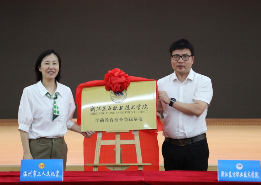 为了更好地适应社会发展对人才的需求,加强高等院校与企事业单位紧密合作,推动我院学前教育专业学生实践教学和社会实践活动长期化、专业化、阵地化发展。2023年8月24日上午,浙江东方职业技术学院智慧康养学院党总支书记金晶、副院长杨水华,学前教育教研室全体教师共赴温州市工人文化宫,举行温州市工人文化宫和浙江东方职业技术学院学前教育专业校外实践基地的挂牌仪式。