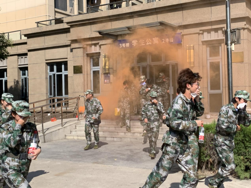 此次消防演练主要是模拟寝室突然失火,让同学们掌握快速安全的自救逃生方法和熟悉消防器材的使用。随着响起“火情”预警的信号,本次消防演习正式开始。在辅导员的带领下,同学们用衣服或纸巾捂住口鼻,采取弯腰的低姿态,快速、有序地沿着疏散路线,从楼道内的各个安全通道撤离,然后快速地向操场跑去。