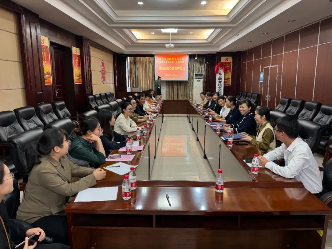 为贯彻落实《国务院办公厅关于深化产教融合的若干意见》精神,进一步密切校企、校医联系,切实推进产教融合与校医协调育人,探讨护理、康复治疗技术、健康管理等医学专业建设路径。10月19日上午,浙江东方职业技术学院智慧康养学院(健康医学院)赴温州市龙湾区第一人民医院开展协同育人研讨会,智慧康养学院副院长杨水华出席会,龙湾一医副院长王冬叶等接待,智慧康养学院、龙湾一医相关人员与会。