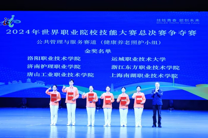 10月30日至11月1日,2024年世界职业院校技能大赛总决赛争夺赛公共管理与服务赛道“健康养老照护”赛项在洛阳职业技术学院隆重举行。本次大赛吸引了来自全国31个省、市、自治区及新疆生产建设兵团的60支参赛队伍230名精英选手同台竞技。我校的刘思源、董文瑾老师带领蔡紫依、张茹昕、翁洪心妤、郑妤茹同学组成的代表队在激烈的角逐中,以卓越的现场发挥和扎实的专业技能操作勇夺金奖,位列小组第一名,成功实现了学校在该赛项金奖零的突破。