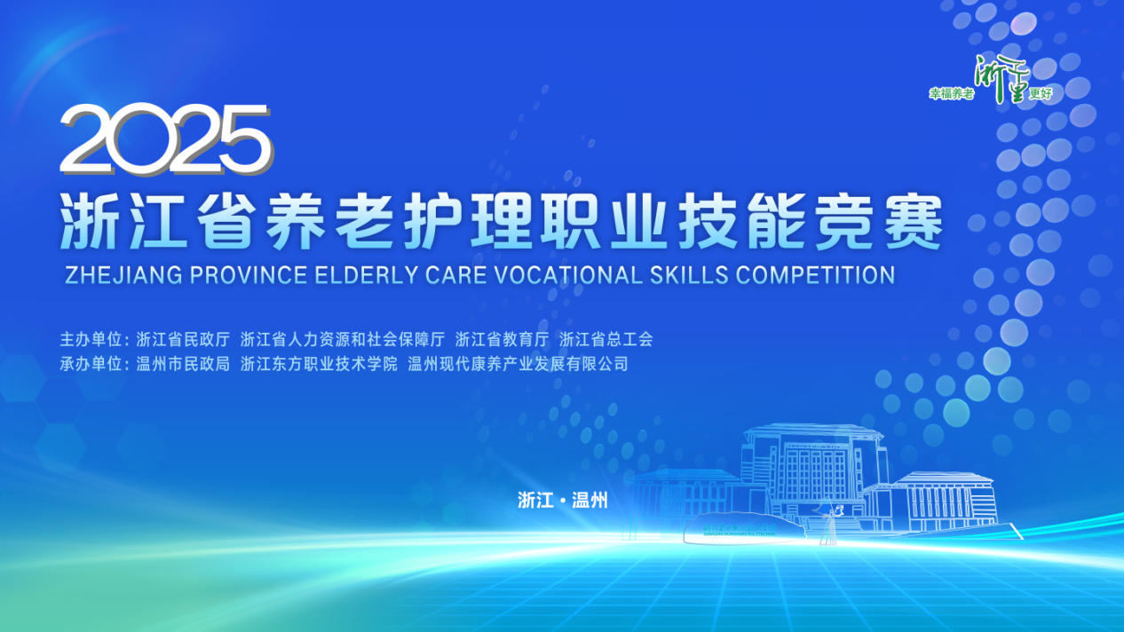 在人口老龄化国家战略深入实施、养老服务高质量发展迈入新阶段的关键时期,一场汇聚全省养老护理精英的职业技能盛会于金秋时节在浙江东方职业技术学院圆满举行。9月24日至26日,由浙江省民政厅、浙江省人力资源和社会保障厅、浙江省教育厅、浙江省总工会联合主办,温州市民政局、浙江东方职业技术学院、温州现代康养产业发展有限公司共同承办的“2025浙江省养老护理职业技能竞赛”成功举办。本届竞赛不仅是技能水平的竞技场,更是一次对新时代养老护理人才队伍建设成果的集中检阅,一场推动产教深度融合、赋能康养产业发展的生动实践。