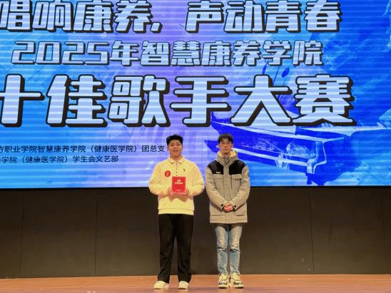 随着最后一段旋律落下,“唱响康养,声动青春” 十佳歌手大赛圆满落幕。在颁奖环节,本次“唱响康养,声动青春”十佳歌手大赛的荣誉归属尘埃落定。酒店管理与数字化运营2401班周博锴同学斩获冠军,婴幼儿托育服务与管理2406班杜雨蔚同学荣获亚军,酒店管理与数字化运营2403班徐展同学摘得季军;另有多位选手凭借出色表现跻身十佳歌手行列。同时,在人气评选中,婴幼儿托育服务与管理2505班吴潇琳同学荣膺“人气王”,充分彰显了其超高人气。每一份荣誉都是选手们用歌声与热爱铸就的勋章,让我们再次向所有获奖选手致以最热烈的祝贺!