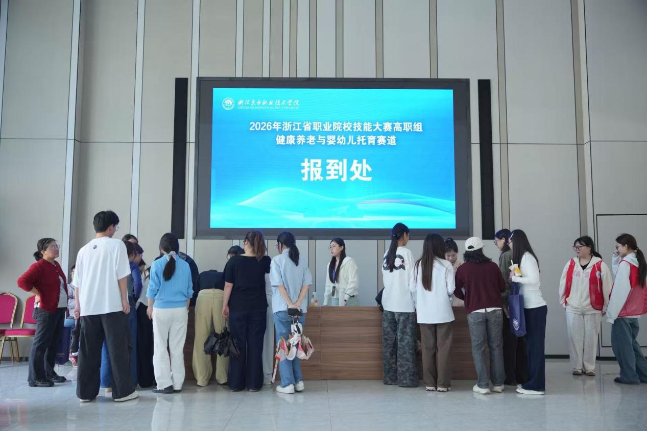 4月9日至12日,由浙江省职业院校技能大赛组委会主办、浙江东方职业技术学院承办的2026年浙江省职业院校技能大赛高职组“健康养老与婴幼儿托育”赛道在浙江东方职业技术学院举行。来自全省17所高职院校的43支参赛队伍同台竞技,共同展示健康养老与婴幼儿托育领域职业教育育人成果。